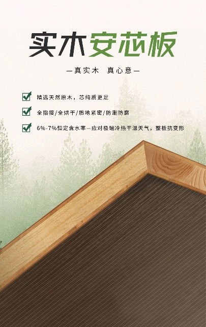 实木——作为实木安芯板的最关键词汇,切中的正是国人对实木的一贯追求,代表着自然、厚重、环保等特质,是当下消费市场更为明显的消费趋势,再通过全烘干和全指接等技术手段,基材质地会更加紧密,且具备稳固抗变形、防潮防腐等特质。