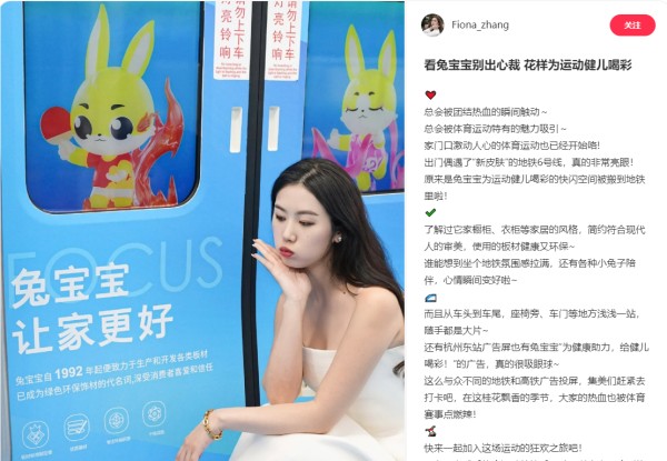 从公交到地铁再到高铁,兔宝宝陪伴着大家出行的每个环节。9月10日起,在杭州东站、杭州地铁6号线、德清高铁站、德清公交站等地都能看见“运动健儿兔IP”形象。作为浙江的本土企业,兔宝宝这次推广活动特别选择了各种类型的公共交通站点,目的就是呼吁大家走出家门、绿色出行。