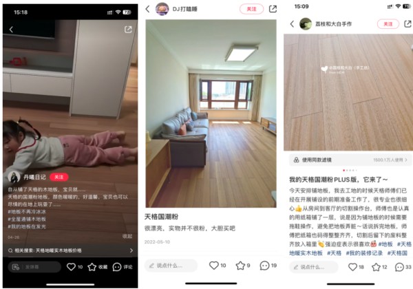 天格青春系列产品一经上市就得到了众多年轻消费者的喜爱,高颜值、高品质、高性价比让越来越多年轻人以青春系列作为人生的第一款高端实木地板,不仅提升了整体家居品味,同时也让年轻人获得高端舒适的地面体验,因此不少用户自发在小红书、知乎等社交媒体平台表达自己的认可。