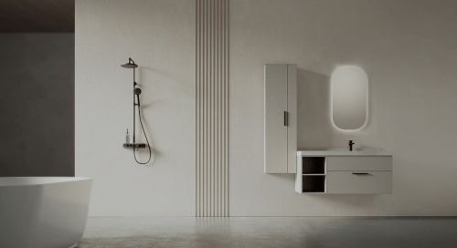 Nuovo诺沃F2M9110系列置物花洒,其独特的淋浴置物一体设计不仅美观实用,而且还免除了另外安装置物架的烦恼。用于置物的300mm高密抗污岩板具有防滑防湿的功能,在上面放上洗浴相关的瓶瓶罐罐以及提振改善心情的香薰都可谓十分便利,让伴侣感受到你的贴心。