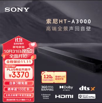 索尼回音壁分分钟带来沉浸式环绕音体验,这次双十一活动力度很大,趁着双十一期间快入手一款最适合自己的索尼回音壁吧,真的很划算~