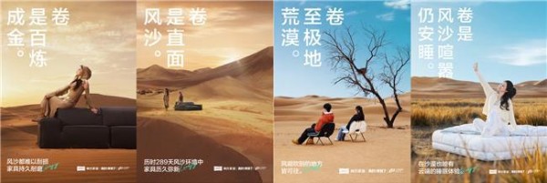 今年年初,林氏家居悄然“卷”到无人之境,发起了为期一年的沙发品质挑战。与其他室内验证环节不同的是,林氏家居将多个家具产品放置在位于腾格⾥沙漠腹地⽆⼈区,接受昼夜温差30℃极端天气的持久考验。而在今年双十一期间,林氏家居重回沙漠,让全网共同见证历经249个日日夜夜风沙洗礼的沙发依然完好如新,再次印证产品品质优势。