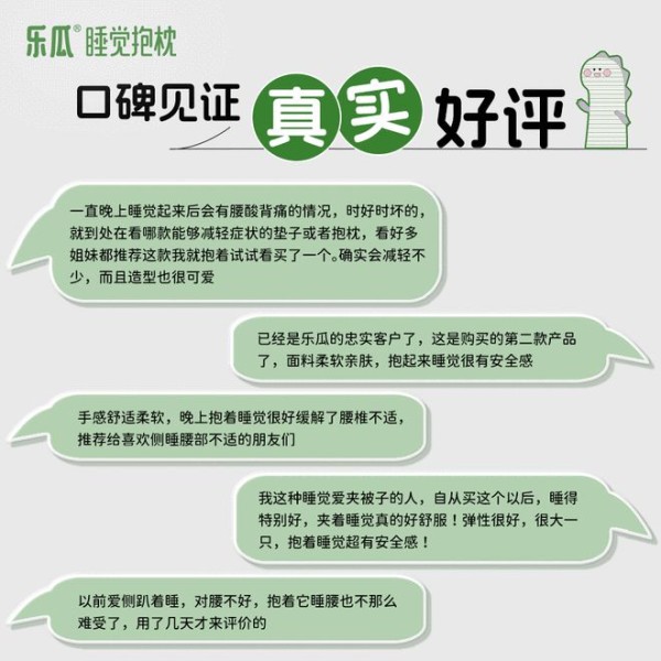 “抱着舒服”“腰不酸了”“支撑到位”……在乐瓜天猫旗舰店数万条真实评价中,这些高频词汇印证了大众对产品的认可。96%的好评率与20%的复购率,证明了用户对乐瓜的深度信赖。从初次尝试到日常依赖,用户的真实转变,正是科学护睡理念的真实验证。