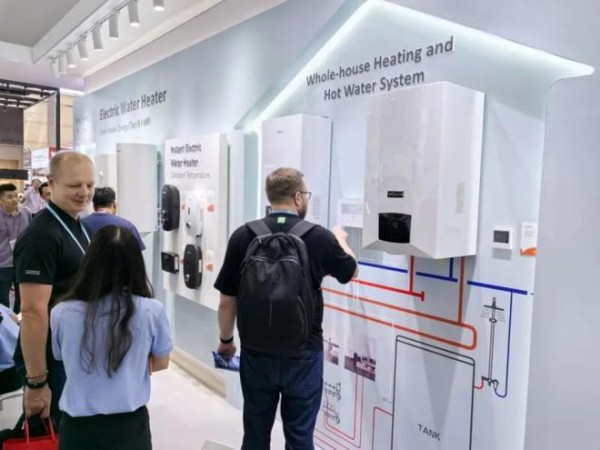 此外,万和还展示全屋供暖与热水并联系统,支持8台壁挂炉并联控制,满足多区域分区控制需求,六大模式满足多种场景下用户需求,并通过手机APP实现智能操控。这一系统特别针对东欧等寒冷地区的市场需求,将成为万和开拓海外市场自主品牌的利剑。