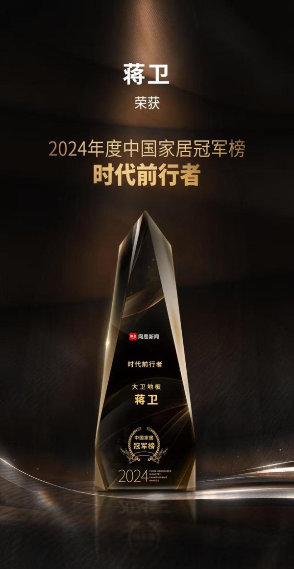 2025年2月10日,网易“2024年度中国家居冠军榜”重磅发布,以荣誉致敬行业标杆,凝聚发展势能。大卫地板凭借以客户满意为标准的市场深耕,荣获“卓越影响力品牌”;董事长蒋卫荣膺“时代前行者”称号,展现中国家居企业破局升级的先锋力量。