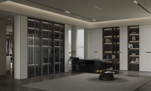 如果说厨房与客厅是家庭共享的温情场域,卧室则是母亲回归自我的精神领地。米拉系列以法式优雅为基调,融入智能科技的温度,为母亲打造兼顾实用主义与精神愉悦的私享空间。印象春日印花背板与绘光流彩护墙,在灯光晕染下交织出浪漫氛围;鸢尾花元素的蔓延线条,于对称韵律中诉说生命的蓬勃之美——这些设计语言,悄然呼应着母亲内心的诗意向往。而真正触动心灵的,是藏于优雅外表下的“智护Magic模块”。嵌入式衣物护理系统,以科技之力完成对衣物的温柔呵护:除尘去味、除菌除螨、抚平褶皱,让羊绒大衣始终蓬松柔软,真丝裙装永葆垂顺光泽;当换季衣物从柜中取出时,仿佛刚从巴黎高级护理工坊归来,让女主人每日的穿衣仪式充满惊喜。更令人赞叹的是,这些智能模块均采用隐藏式设计,科技与美学浑然一体——正如母亲的爱,总是润物无声却无微不至。