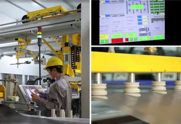 先进的工控系统实时采集温度、压力、胶量等关键数据,一旦出现异常,能立即自动报警,并及时调整参数,确保生产过程的稳定性。真空吸盘与桁架移动系统精准定位基材,搭配激光修边技术,以及集成氮气喷嘴系统和智能恒温仓储技术,使得杰家精板产品的良品率高达99% 以上。这有效避免了温差变形、高光不足等瑕疵问题,显著提升了产品质量。