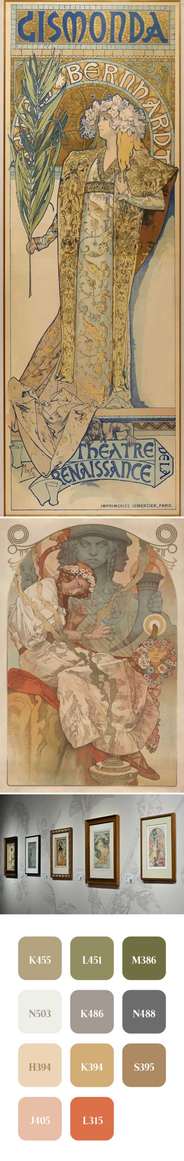 【看展秒变配色课】穆夏的色彩美学,堪称“家居灵感教科书”。展览现场,芬琳漆特别打造了“色彩灵感”,与穆夏的经典色调一起,转化为可实际应用的家居配色方案。