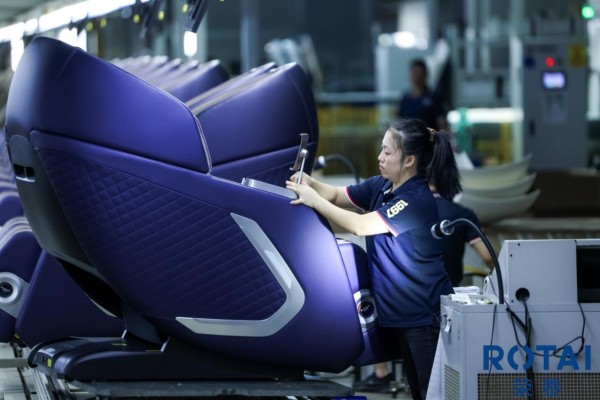 而真正的智能化集大成者,是工厂的立体仓储系统。原材料通过自动标识入库,由机械臂智能抓取、分拣;成品按摩椅则通过提升机自动传输至可容纳7000台的立体仓库,实现从入库、存储到出库的全流程无人化作业。荣泰南浔工厂负责人表示:“从原材料到成品,所有物料流转均通过系统调度完成,不仅实现零搬运的作业模式,更确保了精准溯源与先进先出。”这种以数据驱动生产与仓储无缝衔接的体系,不仅大幅降低了人工干预带来的误差,更将供应链效率推向行业新高度,为荣泰的全球化交付奠定了坚实基础。截至目前,荣泰产品已远销全球130多个国家和地区,全球累计销量突破300万台。