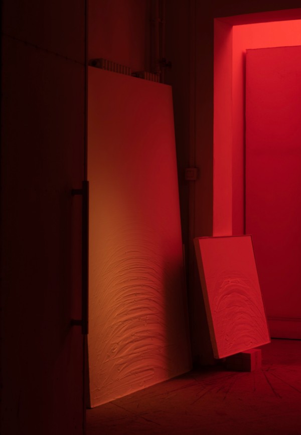改造之前的世界是散乱疏离的,我们用光重构了一个世界,这就是悬浮在半空中的光环的由来。光环向上散发出的光线,弥漫整个工作室。随着色彩的变化,杨黎明在其中不断地穿越,带领着,在他曾经构建的世界中来回跳跃,让人们感受他生命中的轻重、高低变化 。