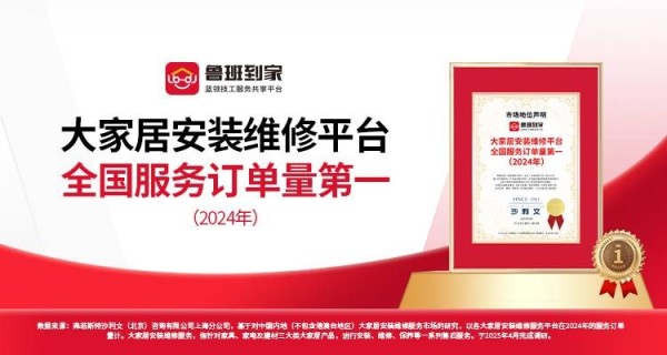 2025年弗若斯特沙利文颁发认定,鲁班到家大家居安装维修平台全国服务订单量第一(2024年),成功进入国内大家居后市场服务第一阵营。