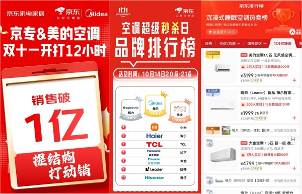 双“11”迎来家电销售热,美的空调领跑京东天猫销量榜