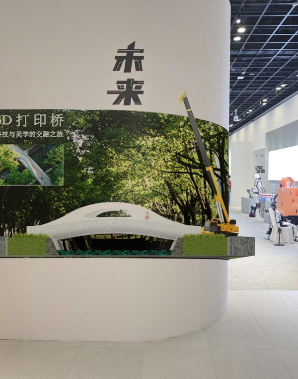 3D打印桥由该院与浙江大学教授团队联合研发,位于浙江大学宁波校区,全长16m、宽3.3m、高3.3m,是非线性空间体型配筋打印混凝土景观桥梁。通过数字技术模拟,展现出独特的艺术魅力与科学智慧。