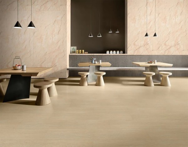 石晶地面系统有“云漫系列、瑞吉庄园系列、瑰丽系列、巴洛克系列”,纹理、花色与质感丰富多元,全面满足高端设计与个性化空间的营造需求。
