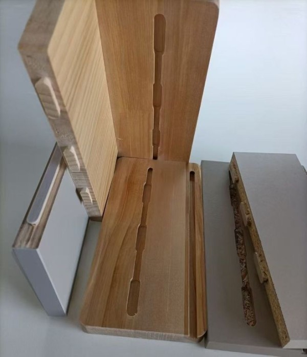 特色基材的加入,让杉木尼系列更显差异化。南洋香杉实木板自带天然木香,切割时飘散的清香,让家居空间多了一份自然疗愈感;澳桉榫卯健康板则融合传统榫卯工艺与现代锁扣技术,无钉结构让安装更便捷,结构稳定性堪比“板材界的乐高”。这种“一板多材”的灵活组合,让家具厂能根据民用家具、商业空间等不同场景,精准匹配基材需求。