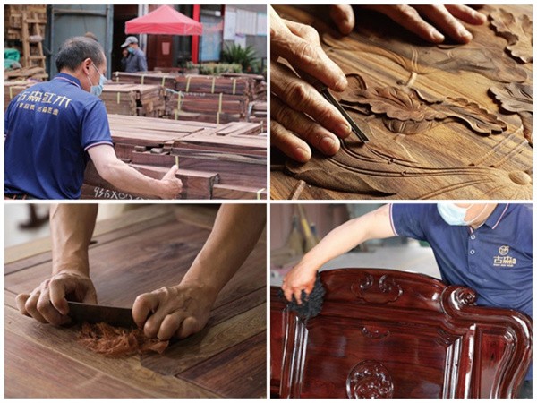 古森红木建立木材基地,原材储备过万吨,在选料方面优中择优