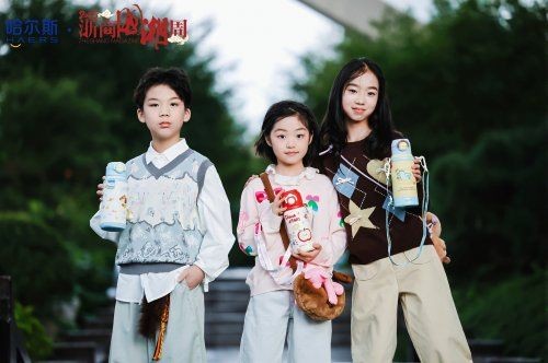 另一边,活泼可爱的小模特手捧童真盎然的“星幻果趣”“奇妙萌友”“乐饮”等保温杯,用可爱穿搭与杯身的卡通图案户型,让国潮从“年轻人专属”延伸至“童趣共享”,展现了杯壶产品跨圈层的文化传播魅力。