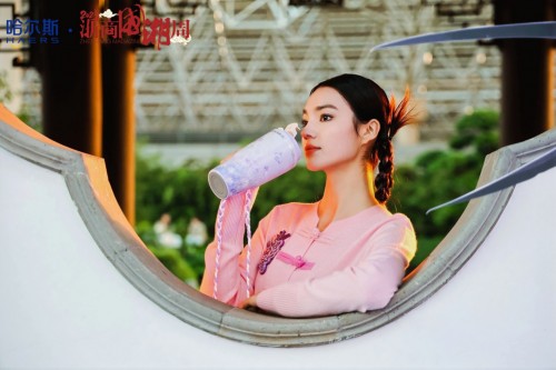 在国潮大秀启幕前,哈尔斯就着中式园林布景与落日斜晖率先释出一组“杯与生活”主题时尚大片,用镜头语言诠释“保温杯就用哈尔斯”的核心主张。这组大片采用时尚杂志的拍摄手法,将产品融入年轻人熟悉的生活场景,通过模特妆造的呼应、光影构图,突显杯壶的高级感与时尚感。