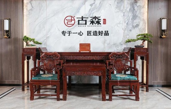 古森红木2003年创立,专注黑酸枝和红酸枝精品家具。一套家具需历经98道工序、4380小时精工细作,从原木养生到六漆六磨。
