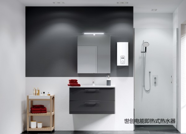 世创电能的恒温热水三剑客:即热式水箱,与热泵匹配,满足大宅及多人口家庭需要;空气能热水器,澎湃水量,一次性可提供近600升热水(混合水温40度);即热式热水器,小巧灵活,尤其适合大宅不经常使用的客卫、阁楼、地下室等空间,不用不好能,用时热水一开即来,非常方便。