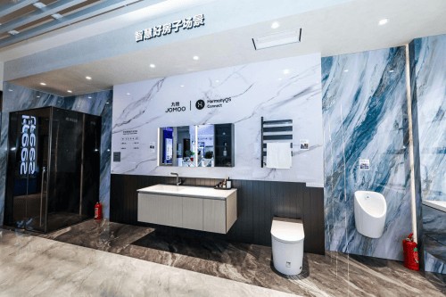 围绕高颜值、智慧化、人性化的用户诉求,九牧智慧好房子解决方案打造了新时代高端理想人居样本。九牧定制悬挂浴室柜既是高级收纳仓,也是AI美妆室,搭载15.6英寸智能魔镜,可感应温度湿度,自动除雾,随时清晰照人。i60微泡净智能马桶,搭载超微气泡水、净味焕香等创新洁净技术,除菌率高达99%,还能从源头阻断异味扩散,全面呵护用户洁净与健康。轻智能恒温淋浴器,智慧数显,恒温出水,丝雨绵密,带来酣畅沐浴体验,还可在沐浴前远程遥控预排冷水,告别长时间等待和反复试温。