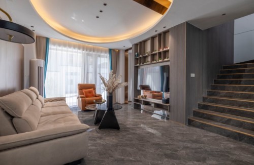 灯带布置:用LED灯带勾勒出空间的轮廓和细节。 #硬装# #吊顶设计#