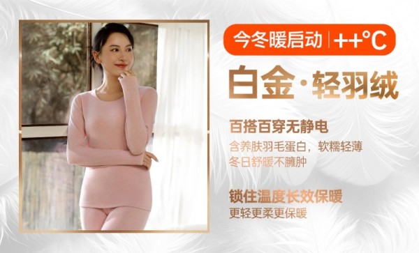 在保暖服饰不断迭代的今天,消费者早已不满足于“厚重御寒”的传统束缚。如何在轻盈与温暖之间找到完美平衡,成为行业技术突破的关键。纯棉居物精准洞察这一需求痛点,推出「白金·轻羽绒」系列保暖衣,凭借其独家创新升级的科技面料,真正实现了“更轻、更柔、更暖”的突破,让冬日暖感告别厚重,回归舒适本质。