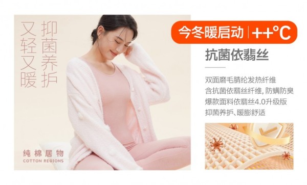 科技造就舒适,创新定义暖感。纯棉居物以“更轻、更柔、更暖、更健康”为核心诉求,通过羽毛蛋白纤维、暖感腈纶、氨基酸生物因子等科技与材质的创新融合,以及织造工艺的迭代升级,成就打破传统保暖认知的标杆之作。未来,纯棉居物将将继续以用户需求为导向,持续深耕面料科技研发,致力于为每一个家庭打造轻柔、健康的冬季保暖穿着体验。