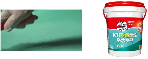 而德高K11柔性防水柔韧性强,可抵御基层轻微的震荡和微小位移,与基材的附着力强,耐水性能好。
