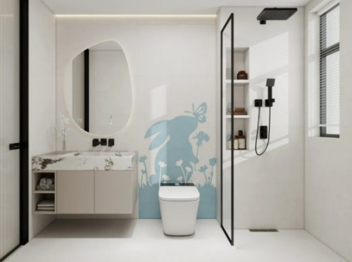 “创意水刀”系列的核心,是将水刀切割技术从传统的地面铺贴中延伸出来,转向更具表现力的应用场景。它不再追求大面积的视觉冲击,而是专注于空间中的“点睛之笔”——一面背景墙、一处玄关装饰、一个卫生间的局部点缀。通过精细切割与色彩搭配,让瓷砖成为表达生活态度的载体。整个系列分为三大类别,分别对应不同的使用需求与审美取向。