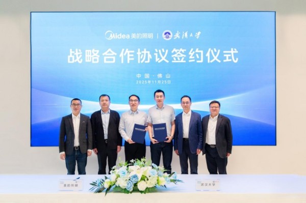 11月25日,美的照明与武汉大学在美的总部正式签署战略合作协议。双方宣布,将围绕光色品质、视觉健康、智能光环境等前沿方向展开深度合作,共同推动照明行业向数字化、智能化、健康化转型,构建以“人-光-环境”为核心的智能健康光环境新范式。