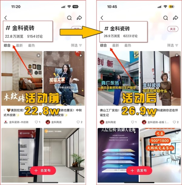 . 声量提升:累计发布笔记299篇,品牌总曝光超13.5万次。#金科瓷砖 话题浏览量增长4.1万,平台品牌声量显著提升。
