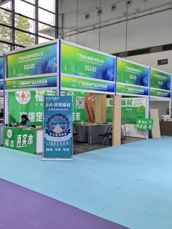 绿色展位吸睛全场!福志板材ENF级无醛新品闪耀2025广西林木展