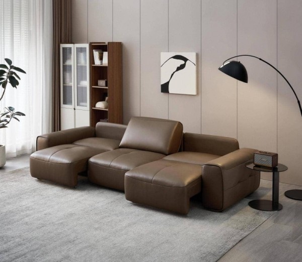 沙发零靠墙设计,小户型友好,功能位往前伸不伤墙面,沙发后方也不担心小物掉落。108°后倾靠包,混充恒压高弹海绵与微孔式高弹棉,饱满蓬松。面料选用进口头层牛皮,柔滑亲肤,柔韧耐磨,更经久耐用。