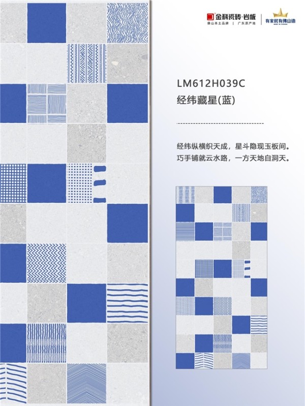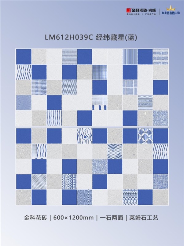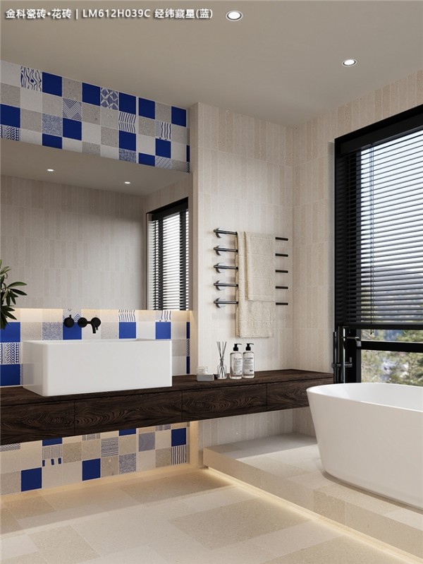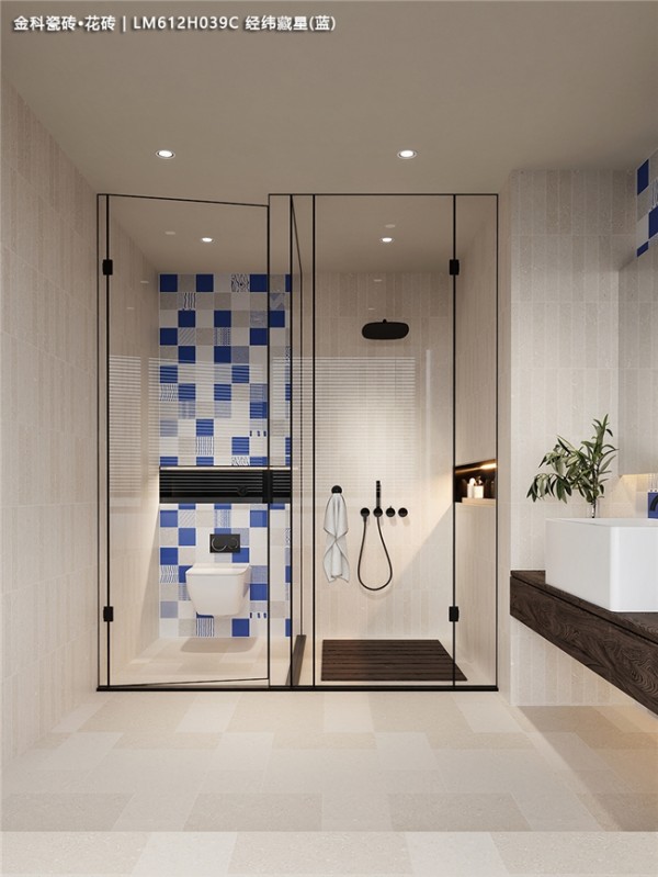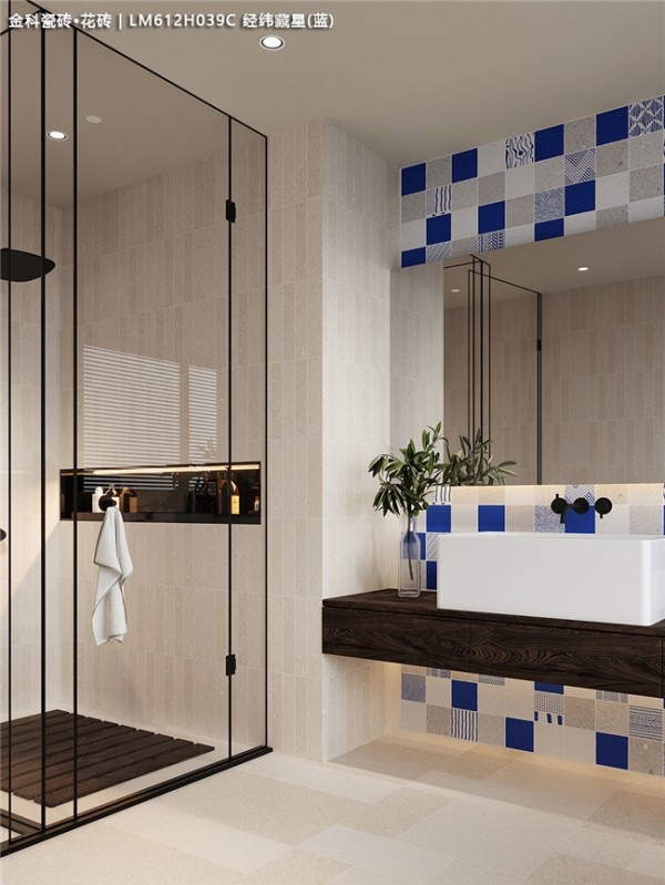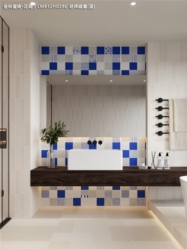 这绝不是普通的瓷砖,而是将莱姆石的灵气注入花砖的艺术品。远看是复古雅致的蓝调韵律,近看则惊喜地发现:每一片砖都拥有莱姆石般的微凹凸肌理,触手温润,仿佛能触摸到时光的痕迹。