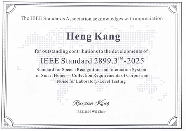 在IEEE 2899系列标准贡献奖颁奖仪式上,联盟对为该系列标准作出突出贡献的专家与企业进行了表彰。云知声作为IEEE 2899.3标准的主要参编单位之一,荣获奖项,充分体现了其在智能语音领域深厚的技术积淀与行业引领作用。