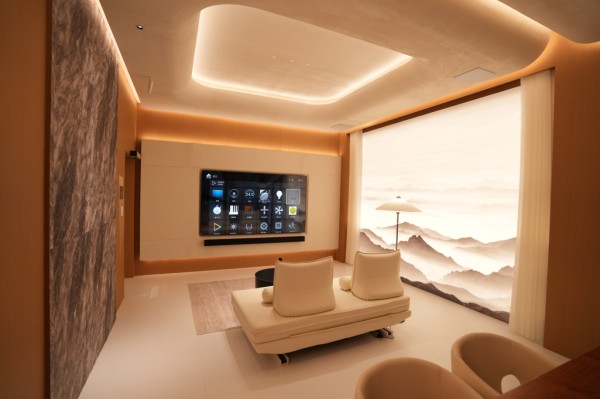 在Control4与易来共建的“声光电体验厅”中,观众能亲身感受两大品牌在技术协同与场景联动上的默契。启动观影模式后,灯光可随影片情节自动调暗,音响系统同步进入沉浸状态,展现“光随影动、声由智控”的无缝体验。这一联动手法不仅强化了空间的叙事能力,也体现出Control4在跨生态整合上的开放性与稳定性。