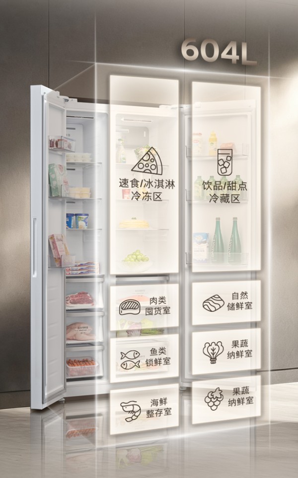西门子博纳臻鲜冰箱以604L浩瀚容量与科学分区,重塑家庭储鲜秩序