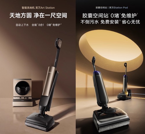 其中,芙万Art Station凭借其“0.1㎡集成清洁中心”的精巧设计和融入家居的美学外观,率先开启了“装修要装空间站洗地机”的家装市场新风潮。它不再是一个孤立的家电,而是作为家居设计的一部分,完美融入阳台、客厅等空间,推动了家居与家电的一体化进程,让智能清洁无缝嵌入现代品质生活。而芙万Station Pod占地面积仅一台笔记本大小,为更多家庭享受极致清洁体验提供了全新选择,成为推动自动上下水洗地机全民普及的先锋。