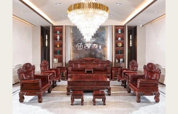 古森红木专注黑酸枝与红酸枝精品。一套家具需历经98道工序、4380小时精工细作,建立了万吨级原材储备体系,从源头保障品质稳定。