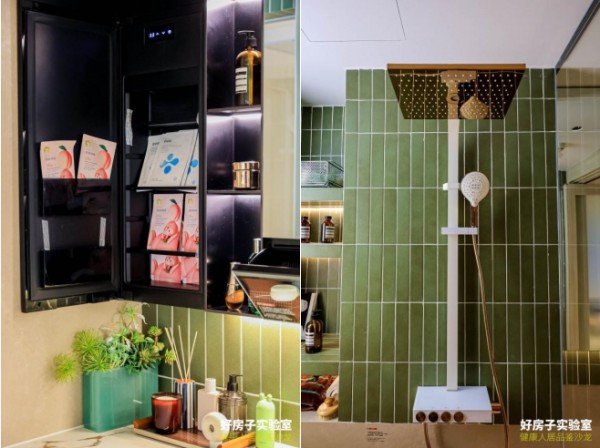 采访中展示的卫浴空间内,科勒博纳镜柜2.0将“美妆存储”理念融入空间布局,配备冷藏功能,既满足日常及专业化护理的收纳空间需求,也体现了对健康与效率的考量;科勒艾贝灵控恒温三出水淋浴柱–多功能头顶花洒通过持续稳定的水温调控,保障不同年龄群体在沐浴过程中的舒适与安全,特别关注老人与儿童的使用体验。