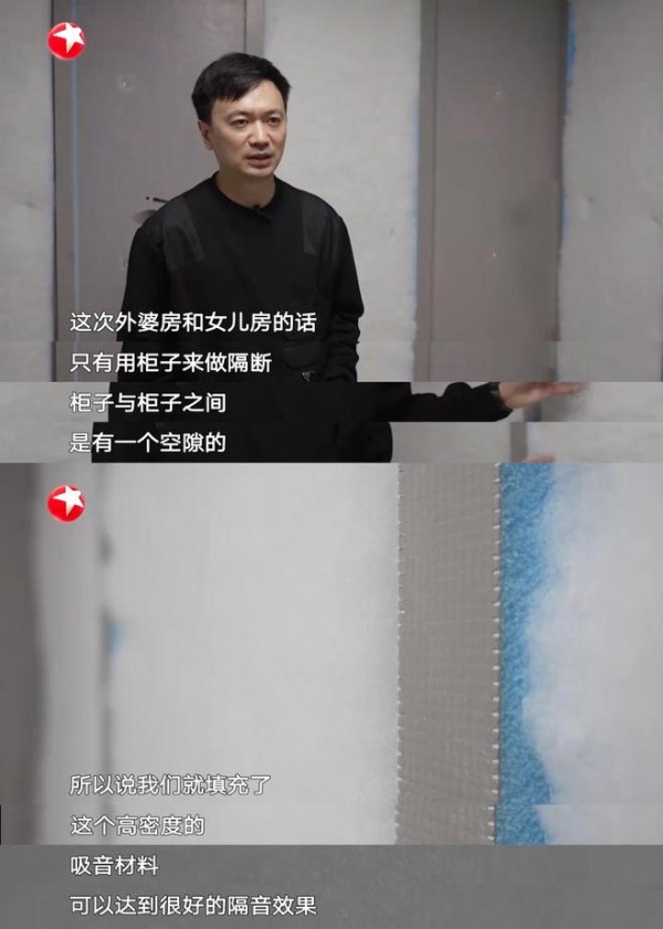 在母亲房与女儿房之间,节目组选用了tetti防水背衬板搭配隔音棉构成轻质隔断结构: