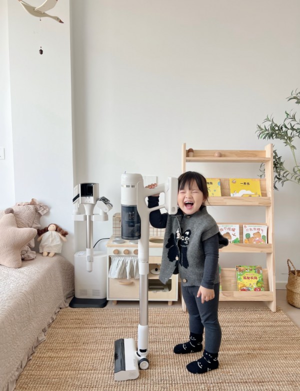 实用优势:260AW 暴风吸力搭配 80 分钟超长续航,足以覆盖 120㎡中小户型的全屋清洁,无需中途充电;支持 90 天免倒尘设计,搭配基站一体化收纳功能,既能减少手动倒尘的麻烦,又能让刷头、延长杆等配件整齐摆放,节省收纳空间;