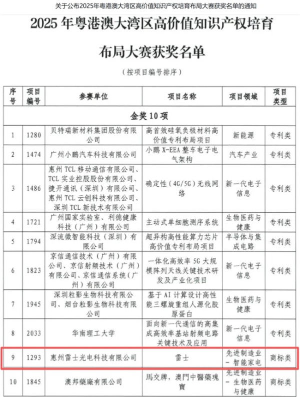 在2025粤港澳大湾区高价值知识产权培育布局大赛中,雷士照明从数百个参赛项目中脱颖而出,摘得商标类金奖。这一荣誉背后,是雷士照明对品牌价值的长期构建与战略守护。在大湾区这个中国创新高地上,雷士照明展示了知识产权从静态保护到动态运营的全面升级。雷士照明将品牌定位从产品标识提升至企业核心战略资产。通过系统化的知识产权布局,不仅建立了完善的商标保护体系,更实现了品牌价值的最大化转化。
