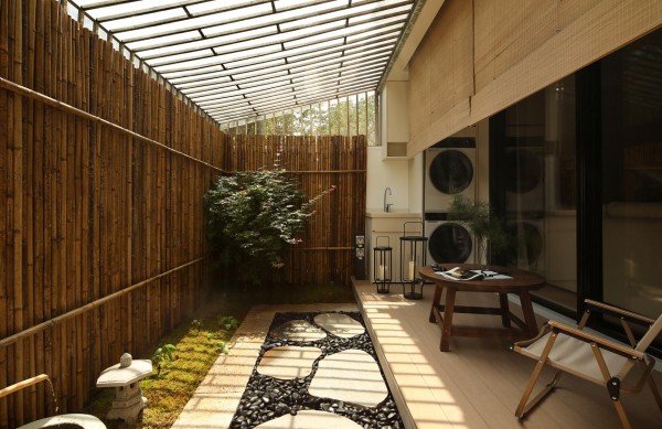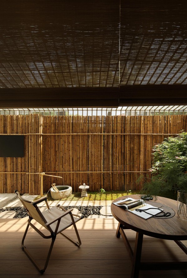 庭院我们也进行了设计,踏入庭院,脚下是错落有致的汀布石,巧妙的穿梭于枯山水之间,每一步都是行走的艺术,更是心灵与自然对话的桥梁,行走间忘却尘喧,回归内心的平静。