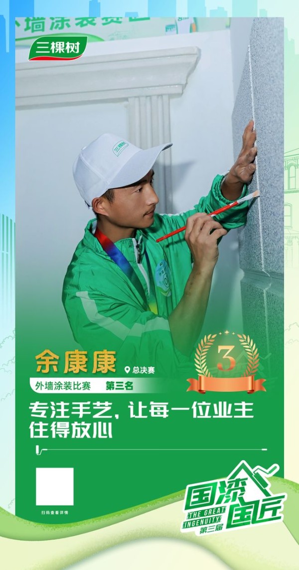 2025三棵树“国漆国匠”大赛总决赛外墙涂装季军余康康:专注手艺,让每一位业主住得放心