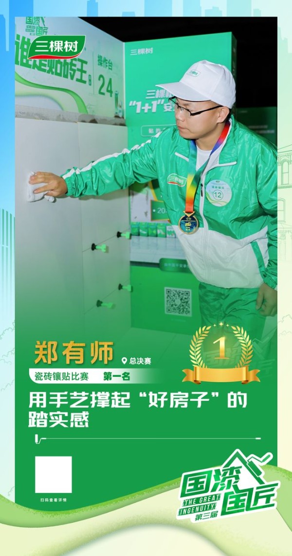2025三棵树“国漆国匠”大赛总决赛瓷砖镶贴冠军郑有师:用手艺撑起“好房子”的踏实感