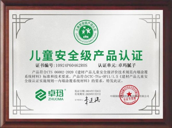 2024涂料品牌盛会 | 新质典范 卓玛荣获“儿童级环保腻子创新品牌”奖项