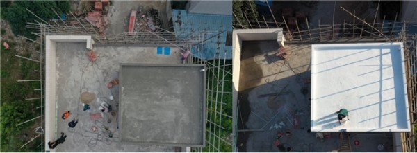 简化施工流程,性价比突出:该组合方案避免了传统屋面需要先做防水、再做保护层、最后做隔热层的复杂工序。采用“界面加固 + 隔热防水面层”的两步法,大大缩短了工期,降低了综合人工与材料成本。R303本身兼具防水与隔热功能,直接外露,无需额外保护层。