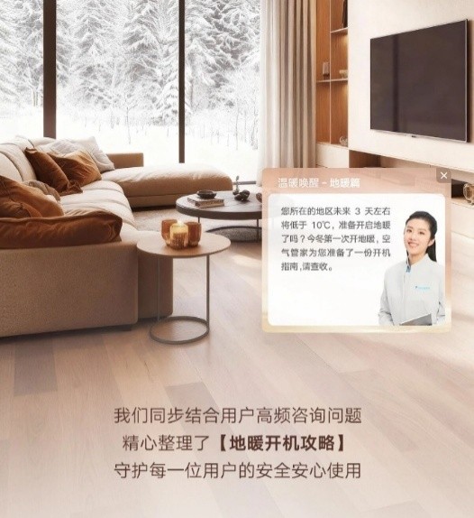 主动守护,让使用更轻松。秋冬换季时,系统会通过 “温暖唤醒” 功能,主动推送开启指南与个性化设置建议,帮用户无忧启动;日常使用中,可通过电话、文字、视频等多种方式联系真人客服,快速解答操作疑问。正如武汉用户“冬眠狮子”所说:“售后400电话秒接,小问题很快就解决了。APP也能预约专人上门,非常方便。”